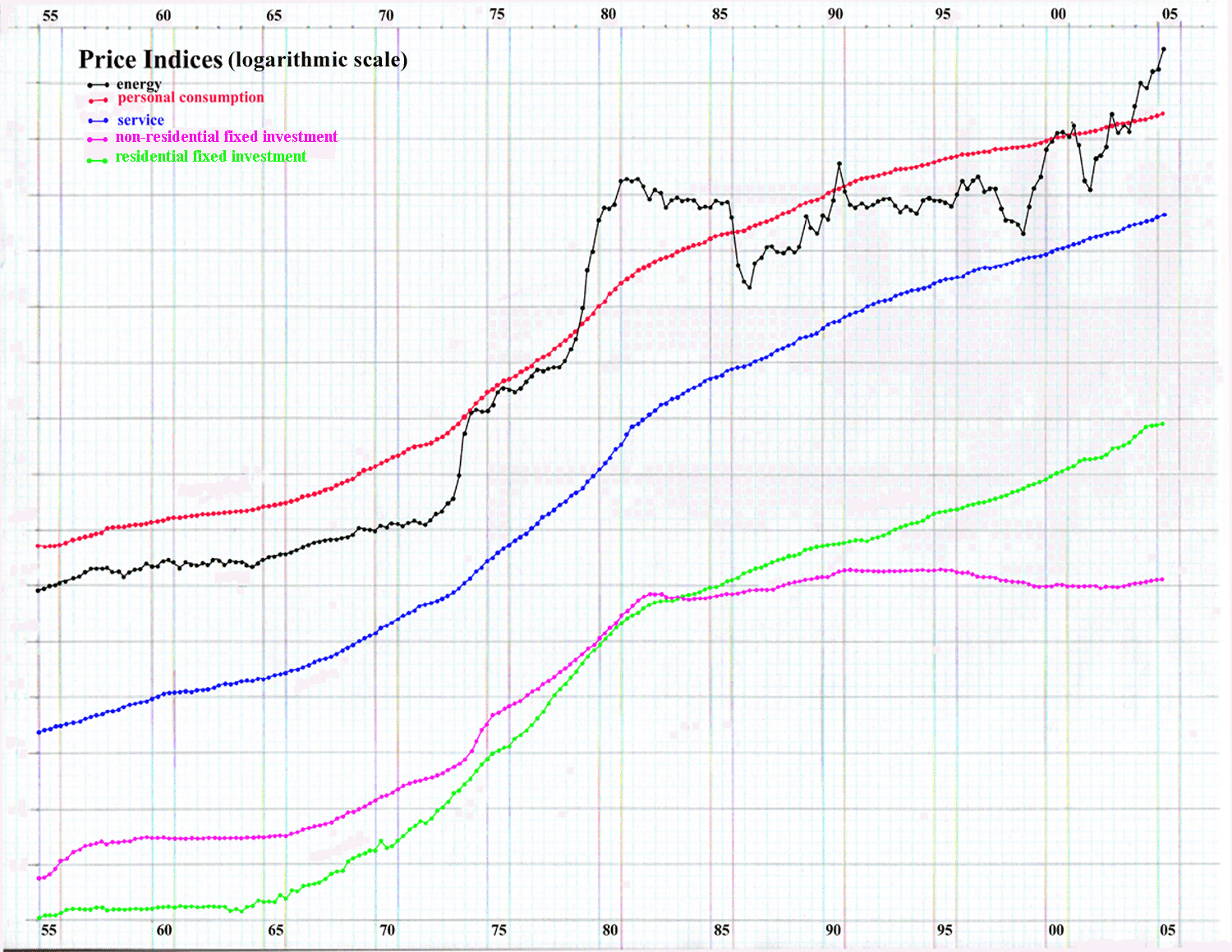 the price index of service from the price index of energy since early 1980's is also evident. Since service