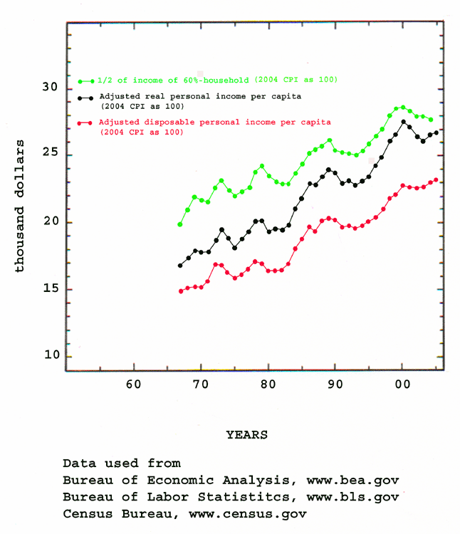 income per capita as shown in Comment 29. The adjusted real disposable personal income, the red curve, displays much stronger growth than both the
