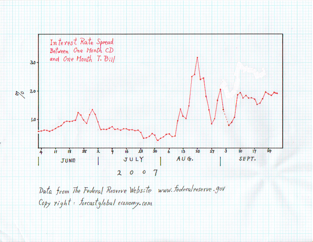 T. Bill. In the graph at the right, daily movements of this interest rate spread is plotted from the beginning of June. The worries about
