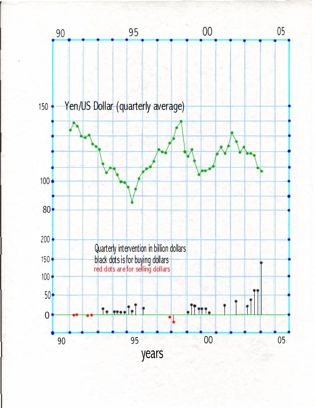 The near ten month massive currency market manipulation of Japanese Government has mopped up around 400 billion dollars from the market. It has temporarily absorbed all the dollar selling pressures, and is allowing Dollar to float freely without much danger of severe drop in its value against Yen. It will take a while for the dollar selling pressure to rebuild as US current account deficit accumulates and more and more Dollar get into the hands of foreigners. Only when enough dollar selling pressure rebuilds, it is a question of when but not whether, the resolve of Japanese Government to artificially depress the value of Yen will be retested with enormous firework.